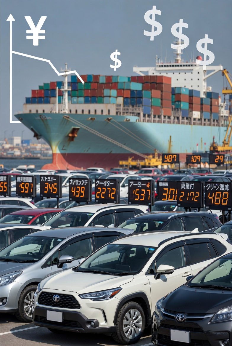ইয়েনের মান ও অকশন প্রাইস: রাজধানী ঢাকার কয়েকটি রিকন্ডিশন্ড গাড়ি আমদানিকারক প্রতিষ্ঠানের নির্বাহিদের সাথে কথা বলে জানা যায়, বর্তমানে ডলারের বিপরীতে ইয়েনের মান দুর্বল অবস্থানে থাকায় জাপানি নিলামগুলোতে গাড়ির দাম (Yen-এ) আন্তর্জাতিক ক্রেতাদের জন্য বেশ আকর্ষণীয়। বিশেষ করে করোলা ক্রস, অ্যাকুয়া এবং প্রিমিউ-এর মতো জনপ্রিয় মডেলগুলোর অকশন রেট স্থিতিশীল থাকলেও মুদ্রার বিনিময় হারের কারণে জাপানি সাইটে এগুলো সস্তা মনে হচ্ছে। কিন্তু এই সুবিধার পথে প্রধান বাধা হয়ে দাঁড়িয়েছে ‘ডলার ডিনোমিনেটেড’ শিপিং চার্জ।