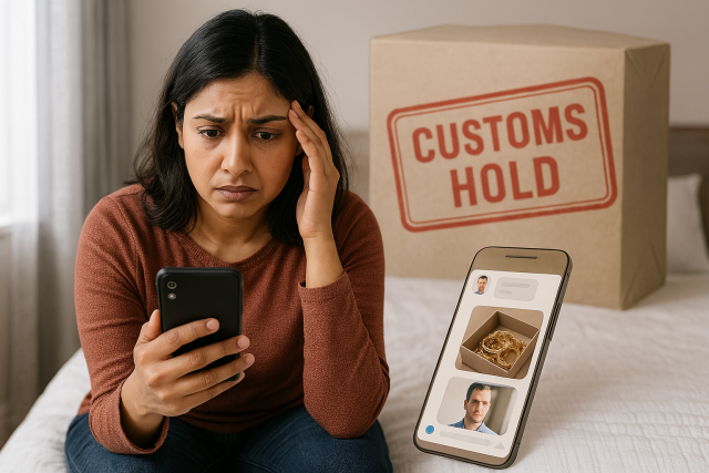 ২০২০ সালে লাহোরের এক স্কুলশিক্ষিকা ফেসবুকে পরিচিত হন এক ‘ব্রিটিশ ব্যবসায়ী’র সঙ্গে। প্রেম জমে ওঠে এবং একদিন সেই প্রেমিক জানায়, সে তার জন্য মোবাইল, ঘড়ি, গহনা, পারফিউমসহ বিশাল উপহারের বাক্স পাঠিয়েছে। কিছুদিন পর এক ব্যক্তি ফোন করে নিজেকে পাকিস্তান কাস্টমস অফিসার হিসেবে পরিচয় দিয়ে বলে, প্যাকেট ছাড়াতে হলে ‘ক্লিয়ারেন্স ফি’ ও ‘অ্যান্টি-টেররিজম সার্টিফিকেট ফি’ দিতে হবে।