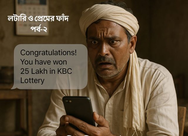 “আপনি কেবিসি লটারি ২৫ লাখ রুপি জিতেছেন। সংগ্রহের জন্য এই নম্বরে যোগাযোগ করুন।”