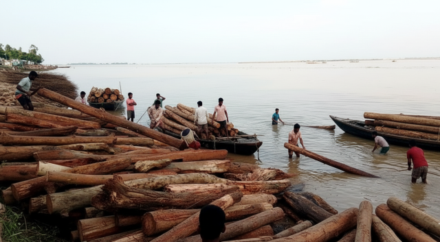 কুড়িগ্রামে আসাম থেকে ভেসে এল ‘লালচে’ কাঠ, বিক্রির ধুম