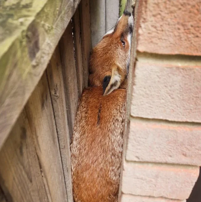 কিন্তু মুক্তি পেতেই বিপদ বাড়ল। আতঙ্কিত শিয়ালটি দৌড় দিতে গিয়ে পাশের ইটের দেয়াল ও বাগানের বেড়ার ফাঁকে আটকে যায়। ফলে আবারও বিপজ্জনক অবস্থায় পড়ে প্রাণীটি।
