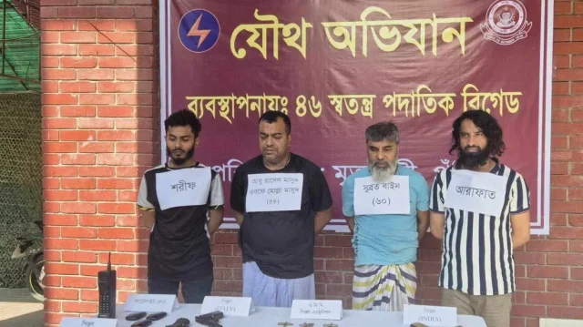 গ্রেপ্তার হওয়া ব্যক্তিরা হলেন- দুই শীর্ষ সন্ত্রাসী সুব্রত বাইন ওরফে ফতেহ আলী, আবু রাসেল মাসুদ ওরফে মোল্লা মাসুদ এবং দুইজন শ্যুটার আরাফাত ও শরীফ। গ্রেপ্তারের সময় তাদের কাছ থেকে উদ্ধার করা হয় ৫টি বিদেশি পিস্তল, ১০টি ম্যাগাজিন, ৫৩ রাউন্ড গুলি এবং ১ টি স্যাটেলাইট ফোন।