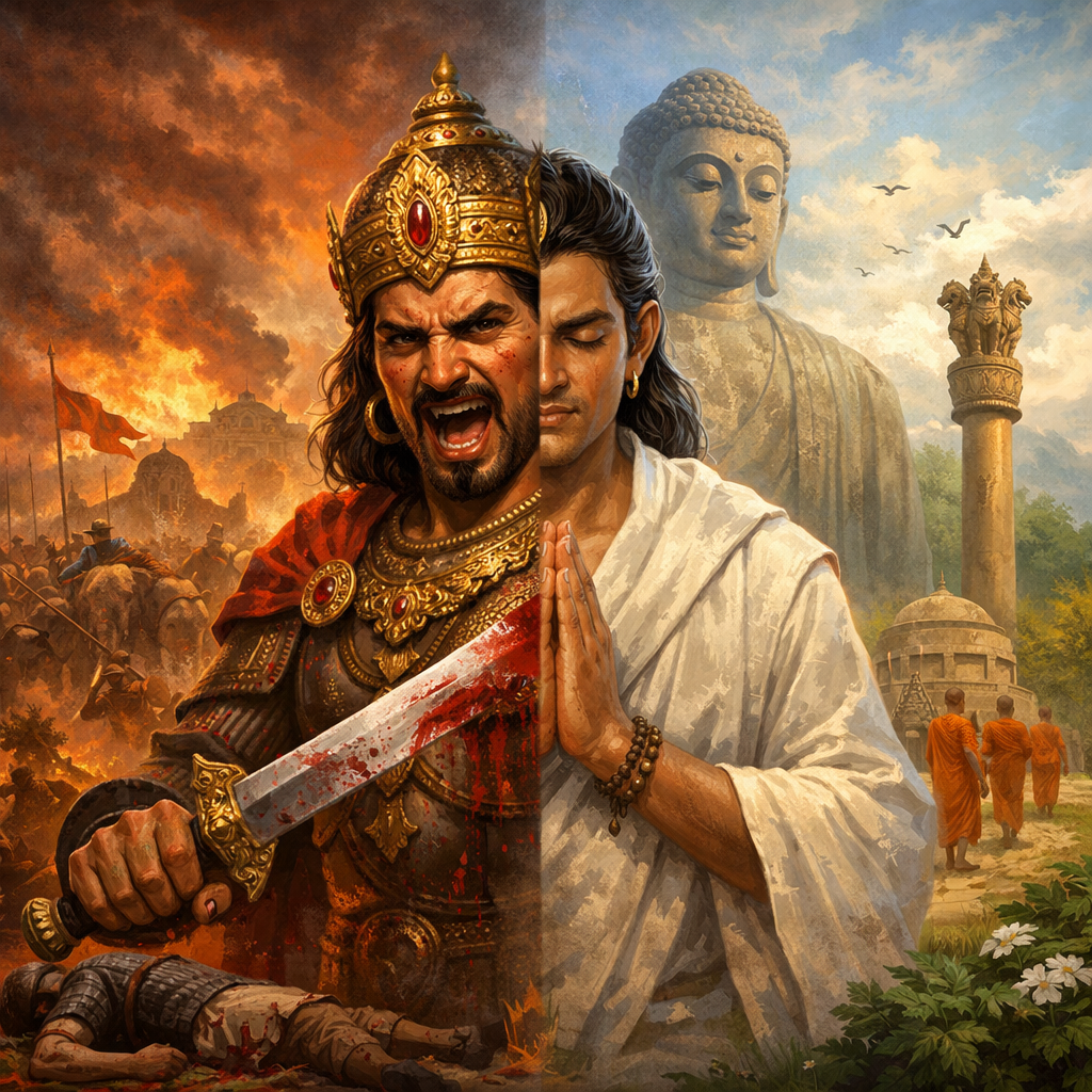 নিষ্ঠুর বিজেতা থেকে মানবিক শাসকে রূপান্তরের এই কাহিনি প্রমাণ করে, ইতিহাস শুধু যুদ্ধ ও জয়ের গল্প নয়। কখনো কখনো একটি উপলব্ধিই একজন শাসককে যুগান্তকারী পরিবর্তনের পথে নিয়ে যেতে পারে। সম্রাট অশোক তারই উজ্জ্বল উদাহরণ।