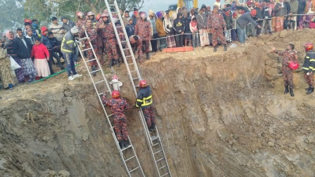এর আগে বুধবার দুপুরে এবং রাতে কয়েক দফা ক্যামেরা নামিয়ে শিশুটির অবস্থান শনাক্তের চেষ্টা করা হয়। কিন্তু উপর থেকে পড়া মাটি ও খড়ের কারণে ক্যামেরায় তাকে দেখা যায়নি। তবে বুধবার দুপুরে গর্তের ভেতর থেকে শিশুটির কান্নার আওয়াজ শোনা গিয়েছিল বলে নিশ্চিত করেছেন উদ্ধারকর্মীরা।