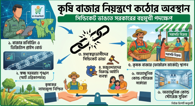কৃষি মন্ত্রণালয়ের পক্ষ থেকে জানানো হয়েছে, দেশের বড় পাইকারি বাজারগুলোতে নিয়মিত তদারকির জন্য বিশেষ টাস্কফোর্স গঠন করা হয়েছে। এই দলগুলো প্রতিদিন আড়তগুলোতে পণ্যের ক্রয় ও বিক্রয় মূল্যের পার্থক্য পরীক্ষা করবে। বিশেষ করে কারওয়ান বাজার, খাতুনগঞ্জ ও বাদামতলীর মতো বড় মোকামগুলোতে ডিজিটাল প্রাইস বোর্ড স্থাপন করা হবে, যেখানে প্রতিদিনের পণ্যের দাম সরাসরি প্রদর্শিত হবে।