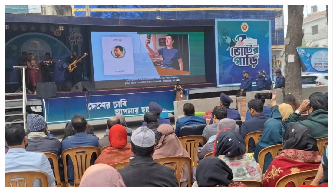 ডিজিটাল প্রচারণায় নতুনত্ব উদ্বোধনী অনুষ্ঠানে দেখা যায়, ক্যারাভানের বিশাল ডিজিটাল স্ক্রিনে প্রচার করা হচ্ছে ভোটাধিকারের গুরুত্ব। ভিডিও চিত্রের মাধ্যমে তুলে ধরা হচ্ছে বিগত সময়ে ভোটের অনিয়ম, কেন্দ্র দখলের চিত্র এবং জুলাই গণঅভ্যুত্থানের প্রেক্ষাপট। স্ক্রিনে ভোটার নিবন্ধন ও যাচাইয়ের প্রক্রিয়াগুলো ডিজিটাল স্লাইডের মাধ্যমে সহজভাবে বুঝিয়ে দেওয়া হচ্ছে সাধারণ মানুষকে।
