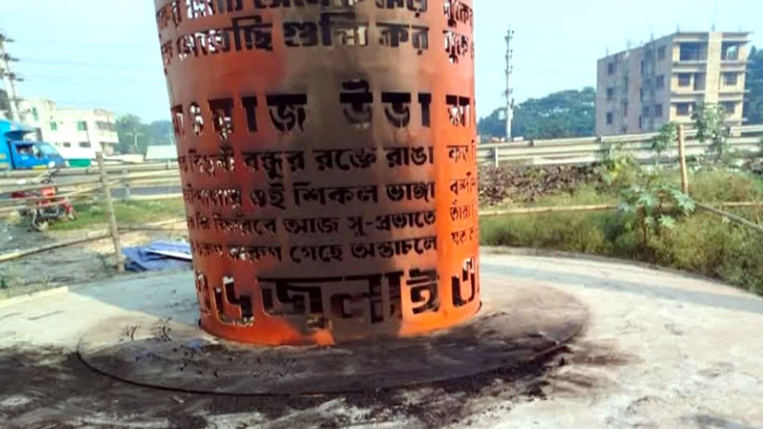 মানিকগঞ্জে রাতের অন্ধকারে জুলাই স্মৃতিস্তম্ভে আগুন