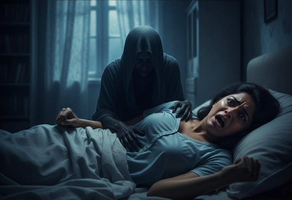 হেলথ ডেস্ক: গভীর রাতে হঠাত্‍ ঘুম ভেঙে গেল। মনে হচ্ছে আশেপাশে কেউ আছে বা বুকের ওপর ভারী কিছু চেপে বসেছে। আপনি ভয়ে চিৎকার করতে চাইছেন, হাত-পা ছুড়তে চাইছেন, কিন্তু শরীর যেন পাথরের মতো অচল! মুখে কোনো শব্দ আসছে না।