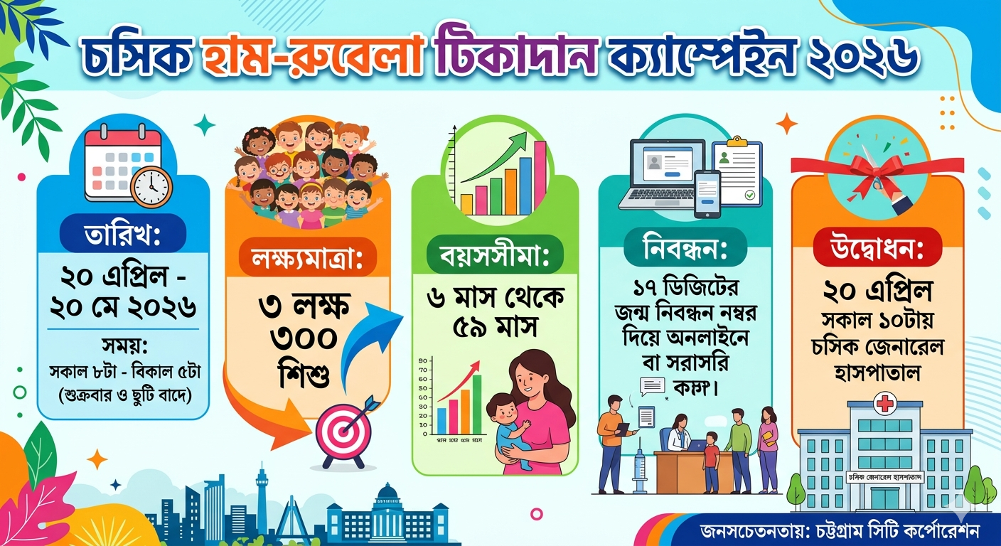 মেয়রের বক্তব্য অনুযায়ী, হাম অত্যন্ত সংক্রামক একটি ভাইরাসজনিত ব্যাধি যা শিশুদের নিউমোনিয়া বা মস্তিষ্কের প্রদাহের মতো মারাত্মক ঝুঁকির মুখে ঠেলে দেয়। এই ঝুঁকি এড়াতে ৬ মাস থেকে ৫৯ মাস বয়সী ৩ লক্ষ ৩০০ শিশুকে টিকার লক্ষ্যমাত্রায় আনা হয়েছে। ক্যাম্পেইন চলাকালীন প্রতিদিন (ছুটির দিন বাদে) সকাল ৮টা থেকে বিকাল ৫টা পর্যন্ত নগরীর ৭টি জোনের ৪১টি ওয়ার্ডে টিকাদান চলবে।