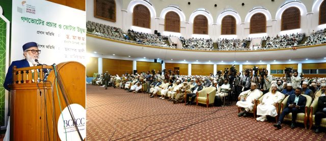 আজ দুপুরে রাজধানীর আগারগাঁওয়ে বাংলাদেশ চীন মৈত্রী সম্মেলন কেন্দ্রে গণভোটের প্রচার ও ভোটার উদ্বুদ্ধকরণের উদ্দেশ্যে আয়োজিত জাতীয় ইমাম সম্মেলনে প্রধান অতিথির বক্তব্যে তিনি এসব কথা বলেন। ইসলামিক ফাউন্ডেশন আয়োজিত এই সম্মেলনে দেশের বিভিন্ন প্রান্ত থেকে আসা সহস্রাধিক ইমাম ও খতিব অংশ নেন।