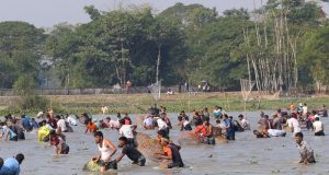 পলো দিয়ে মাছ ধরার উৎসবে হাজারো মানুষ