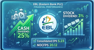 ইস্টার্ন ব্যাংক- এর লভ্যাংশ ঘোষণা: ২৫% নগদ ও ৩% স্টক ডিভিডেন্ড
