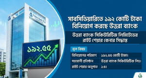 সাবসিডিয়ারিতে ১৯২ কোটি টাকা বিনিয়োগ করছে উত্তরা ব্যাংক