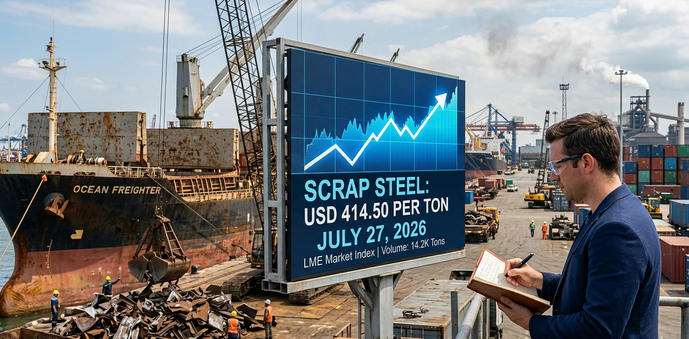 এলএমই-এর ফিউচার মার্কেটে স্ক্র্যাপ স্টিলের (CFR Turkey) দর বর্তমানে ৪১৪.৫০ ডলার স্পর্শ করেছে, যা বিশ্ববাজারের অস্থিরতাকে স্পষ্ট করে।